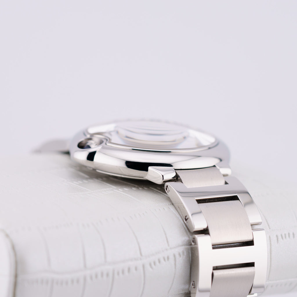 Description: Unveil sophistication with the Cartier Ballon Bleu, a stunning watch that effortlessly blends elegance and modernity. Crafted with a durable stainless steel case and a refined 36mm size, it’s the perfect accessory for any occasion. The signature blue cabochon crown adds a touch of allure, while the delicate dial features exquisite detailing that captivates the eye. Whether dressing up for a formal event or adding flair to your everyday look, this watch stands out as a symbol of luxury. Indulge in a piece that not only tells time but also tells a story of style and grace.