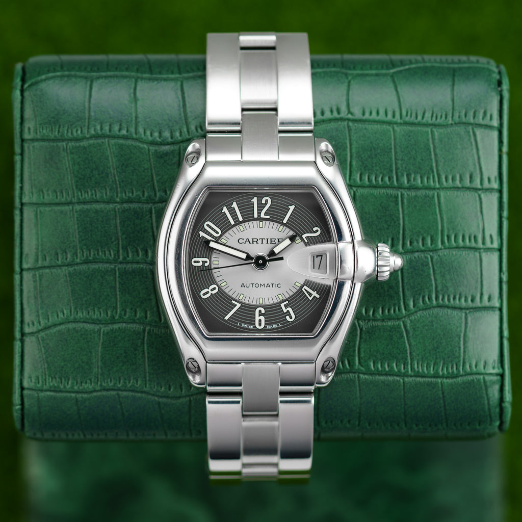Description: Unleash your style with the Cartier Roadster W62001V3, a stunning timepiece crafted from durable stainless steel. With a bold 38mm x 44mm case, this watch perfectly balances sophistication and sporty charm, making it an ideal accessory for any occasion. The unique design features a captivating dial and precision mechanics that showcase Cartier's renowned craftsmanship. Whether you’re at a formal event or enjoying a casual day out, the Roadster effortlessly complements your look. Make a statement with this elegant watch that reflects your personality and taste. Own the Cartier Roadster and let your wrist do the talking.