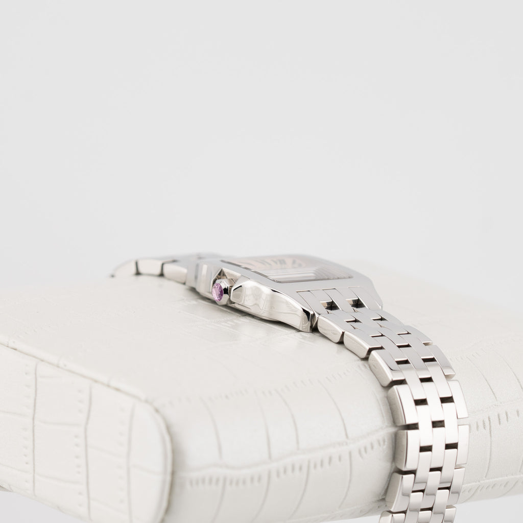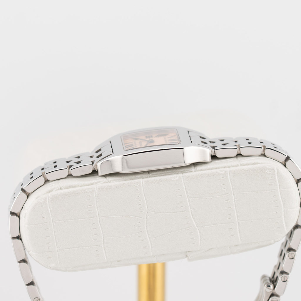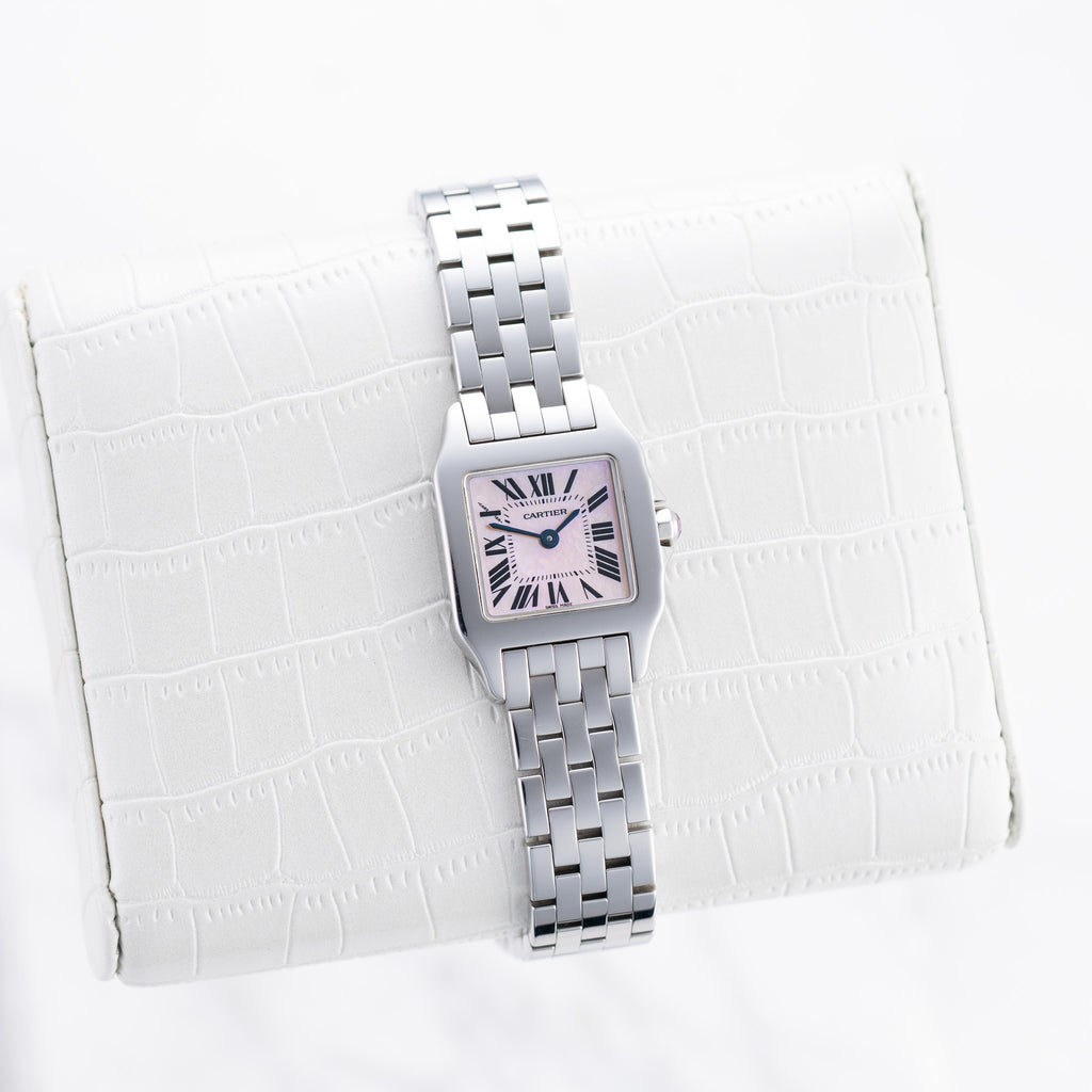 Description: Unveil the elegance of the Cartier Santos Demoiselle, a stunning fusion of style and sophistication. Crafted with a sleek stainless steel case and a refined 20mm size, this watch is perfect for those who appreciate luxury in every detail. Its unique design features a mesmerizing dial that captures attention, making it an ideal accessory for both casual outings and formal events. The quality craftsmanship ensures durability while maintaining a lightweight feel on your wrist. Whether for yourself or as a thoughtful gift, this watch embodies an effortless blend of contemporary flair and classic charm, making it a must-have addition to any collection.