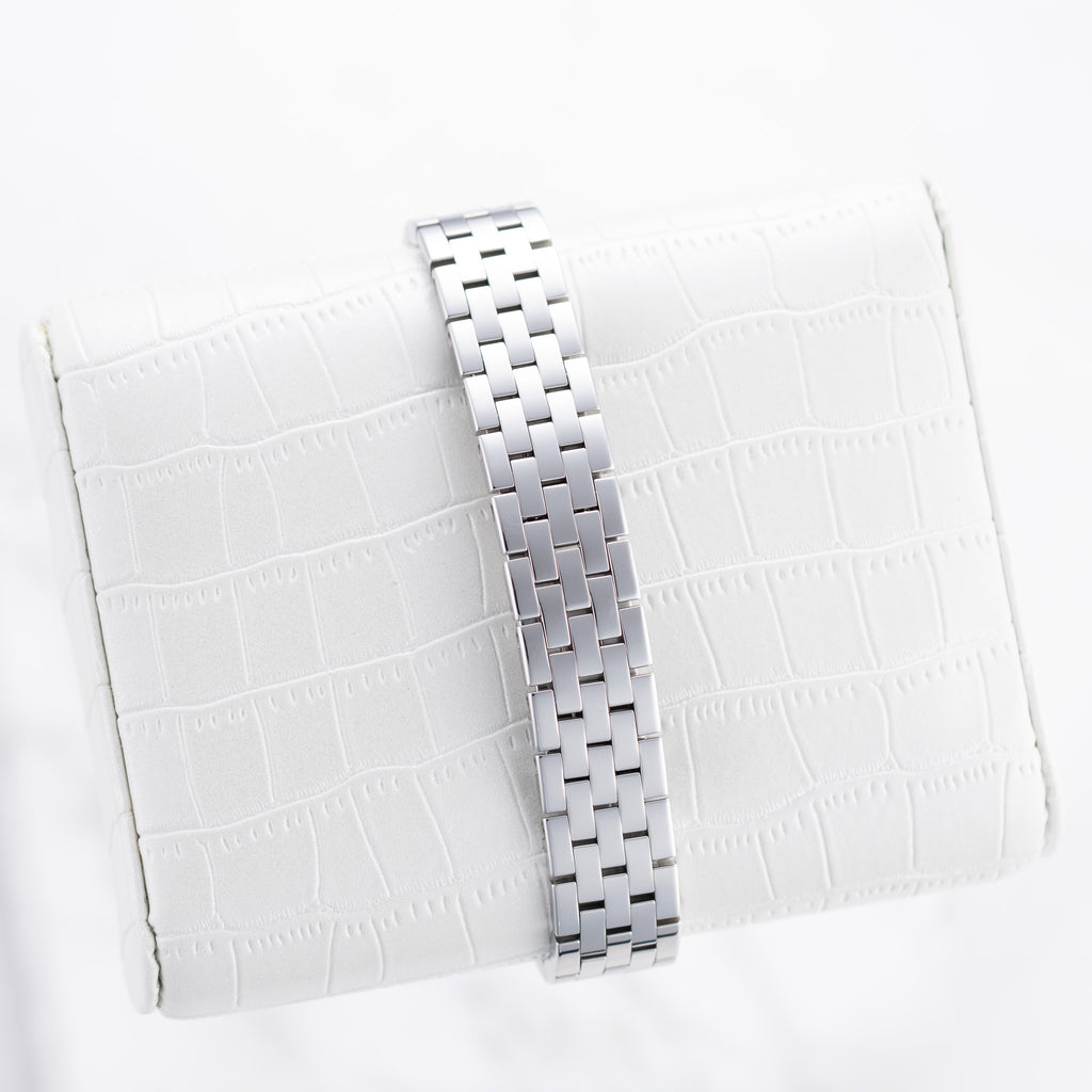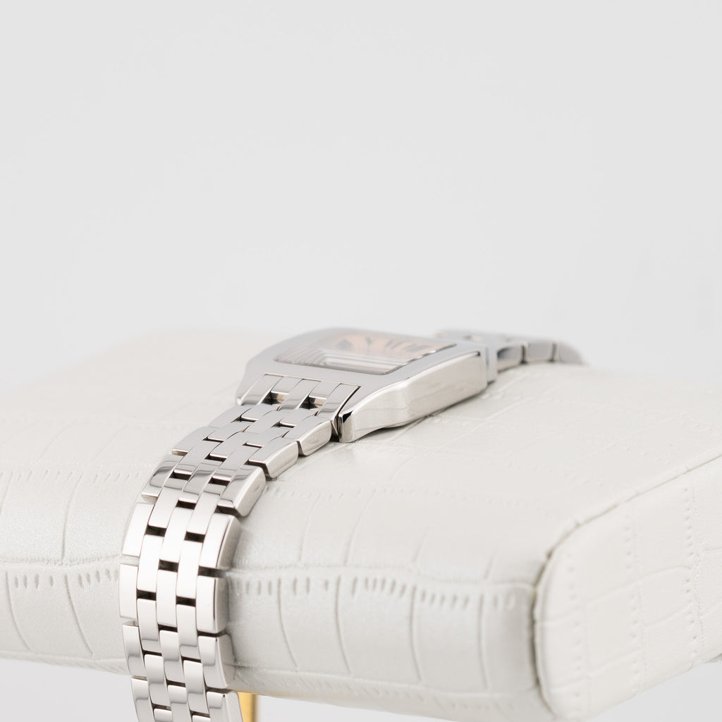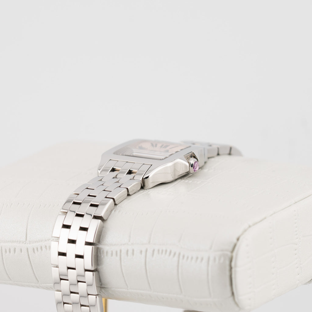 Description: Unveil the elegance of the Cartier Santos Demoiselle, a stunning fusion of style and sophistication. Crafted with a sleek stainless steel case and a refined 20mm size, this watch is perfect for those who appreciate luxury in every detail. Its unique design features a mesmerizing dial that captures attention, making it an ideal accessory for both casual outings and formal events. The quality craftsmanship ensures durability while maintaining a lightweight feel on your wrist. Whether for yourself or as a thoughtful gift, this watch embodies an effortless blend of contemporary flair and classic charm, making it a must-have addition to any collection.