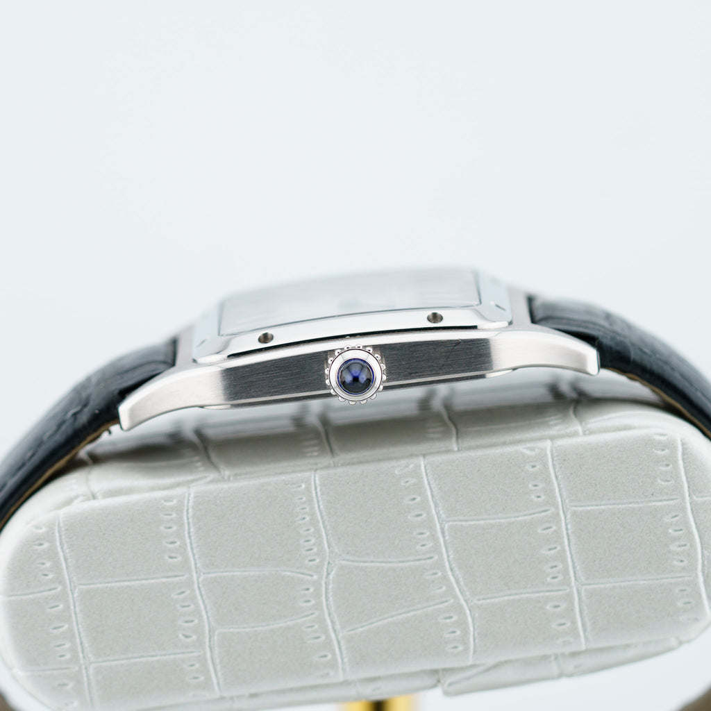 Description: The Cartier Santos Dumont is a captivating blend of elegance and modernity, featuring a stunning stainless steel case that measures 43.5mm by 31.4mm. With its clean lines and iconic design, this watch redefines sophistication for the contemporary individual. The signature square dial, paired with Roman numerals and a luxurious leather strap, makes a bold statement on any wrist. Whether you’re attending a formal event or enjoying a casual outing, this timepiece is the perfect companion. Indulge in the craftsmanship and heritage of Cartier, where every detail is thoughtfully designed to resonate with your unique style.