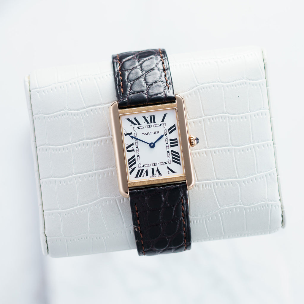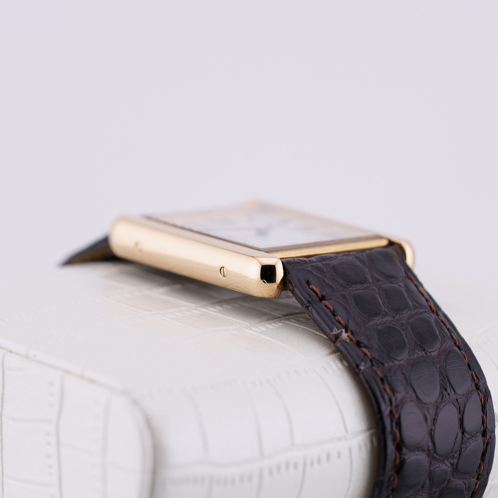 Description: Step into luxury with the Cartier Tank, featuring a stunning rose gold case that beautifully complements its elegant design. This exquisite watch, with its 34.8mm x 27.4mm dimensions, embodies sophistication and versatility, making it the perfect accessory for any occasion. The classic square face, paired with Roman numerals, adds a touch of heritage to modern style. Whether you're dressing up for an event or adding flair to your everyday look, this watch effortlessly enhances your ensemble. A true statement piece, it reflects your taste for the finer things in life and serves as a cherished companion for years to come.