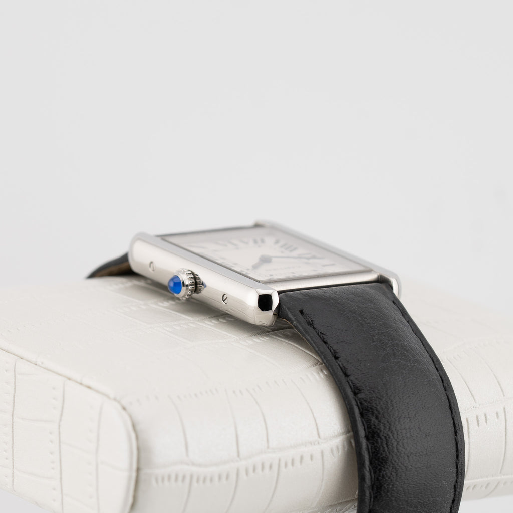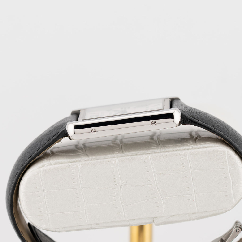 Description: Immerse yourself in the elegance of this Cartier Tank watch, featuring a sophisticated stainless steel case that perfectly blends style and function. With its distinctive 30mm x 23mm silhouette, this watch effortlessly complements any outfit, making it a versatile accessory for both casual and formal occasions. The iconic design showcases a classic aesthetic, while the precision craftsmanship ensures reliability and longevity. Whether you're dressing up for a night out or enjoying a relaxed day, this Cartier watch adds a refined touch to your look. Indulge in luxury and let this stunning timepiece become a cherished part of your collection.