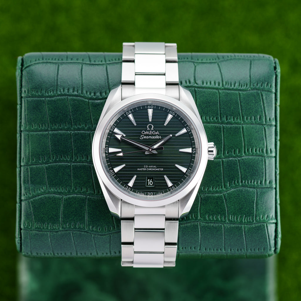 Description: Explore the Omega Aqua Terra 220.10.38.20.10.003, a stunning 38mm watch crafted with a durable stainless steel case. This elegant timepiece effortlessly blends style and functionality, featuring a striking blue dial that catches the eye. With its water resistance and precise automatic movement, it’s perfect for both everyday wear and special occasions. The Aqua Terra's refined design and superior craftsmanship make it a must-have for watch enthusiasts and fashion lovers alike. Whether you’re at work or enjoying a weekend getaway, this Omega watch adds a touch of sophistication to any outfit, making it an essential addition to your collection.