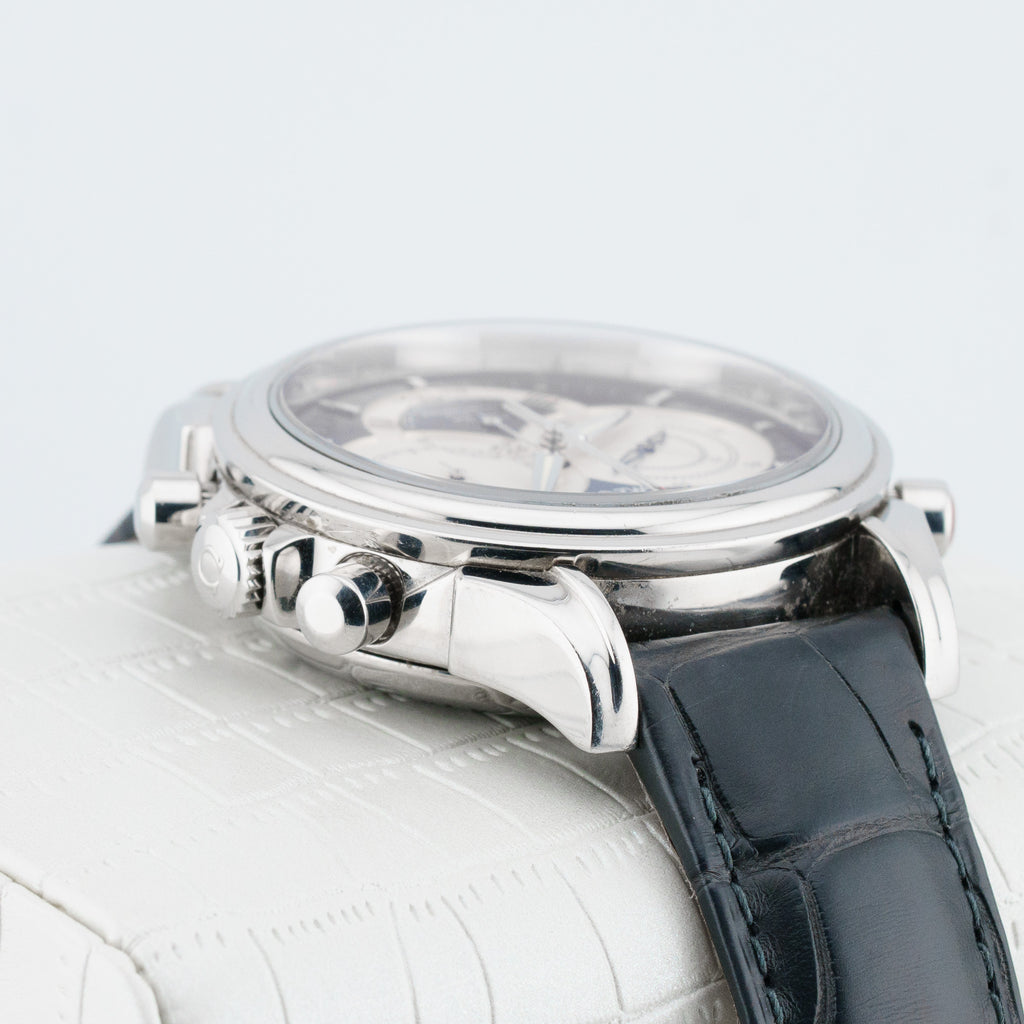 Description: The Omega DeVille Rattrapante 4847.50.31 is a stunning blend of sophistication and precision. Crafted with a stainless steel case and a 41mm diameter, this watch is a true statement piece. Its unique rattrapante function allows for split-second timing, making it perfect for both everyday wear and special occasions. The striking silver dial, paired with elegant detailing, adds a touch of luxury to any outfit. Whether you’re a watch enthusiast or simply looking to make a stylish impression, the Omega DeVille Rattrapante is the ideal accessory. Elevate your timepiece collection with this exquisite blend of form and function.