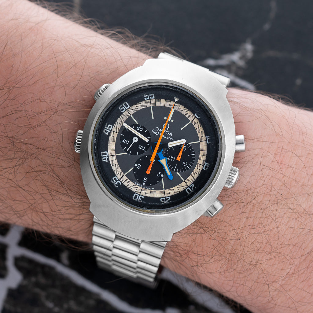 Description: Unleash your passion for precision with the Omega Flightmaster, a stunning watch that marries functionality and style. Crafted with a robust stainless steel case measuring 43mm by 52mm, this timepiece is designed for those who appreciate innovation and aviation heritage. Featuring a striking chronograph and a bold design, it effortlessly transitions from cockpit to boardroom. The intricate dial showcases a blend of clarity and sophistication, reflecting Omega's commitment to quality. Whether you're a seasoned pilot or a watch enthusiast, this exceptional piece is a must-have addition to your collection, ensuring you're always on time and in style.