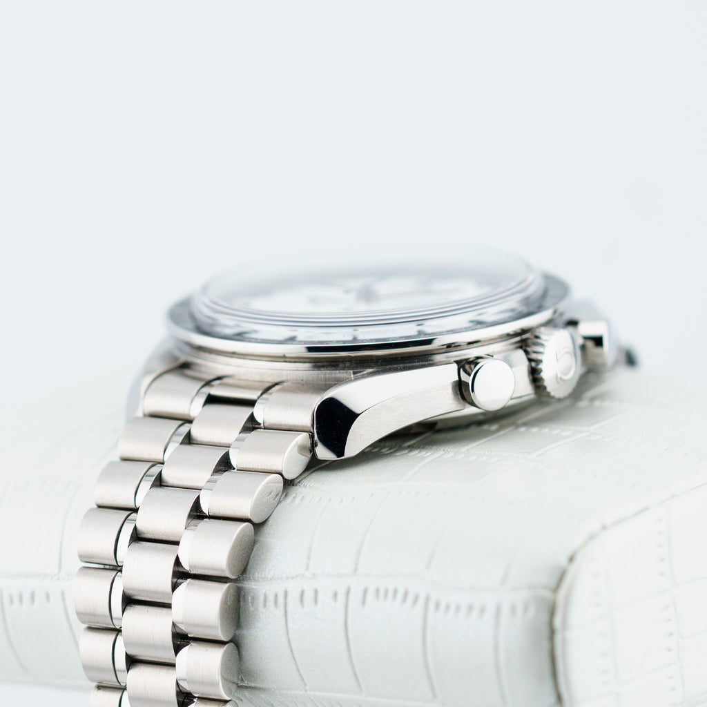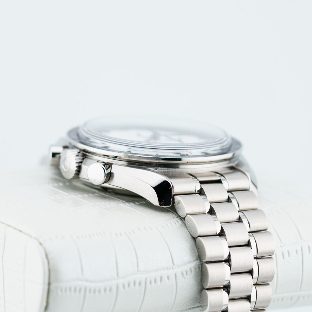 Description: Unleash your passion for precision with the Omega Speedmaster, featuring a robust stainless steel case and a striking 42mm design. This iconic watch combines a classic aesthetic with modern functionality, making it the perfect companion for both formal events and everyday adventures. The intricate chronograph dial showcases Omega's renowned craftsmanship, while the comfortable bracelet ensures a snug fit on your wrist. Whether you're a seasoned collector or new to luxury timepieces, this watch captures attention and admiration effortlessly. Embrace a piece of horological history that transcends trends and speaks to those who appreciate true artistry in watchmaking.