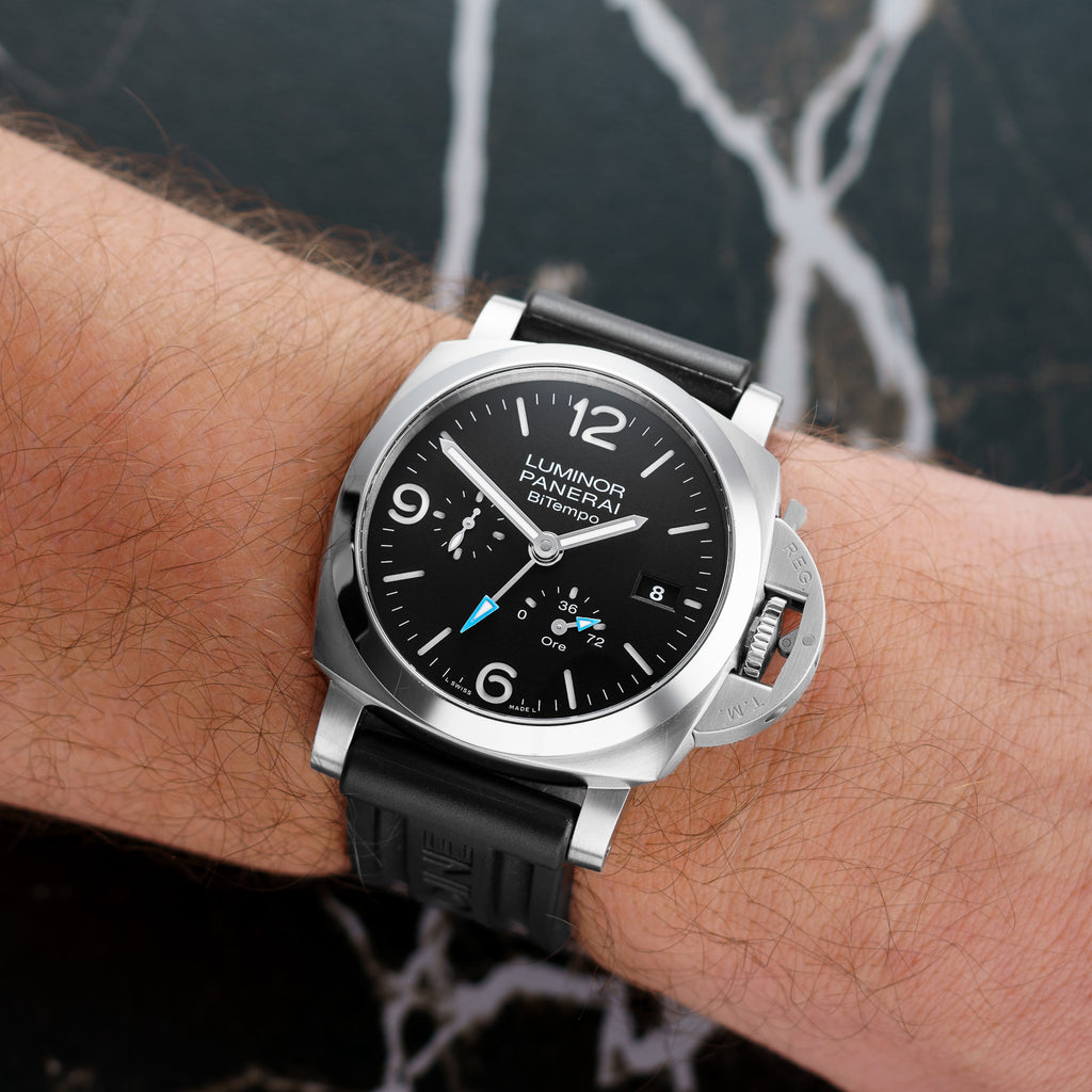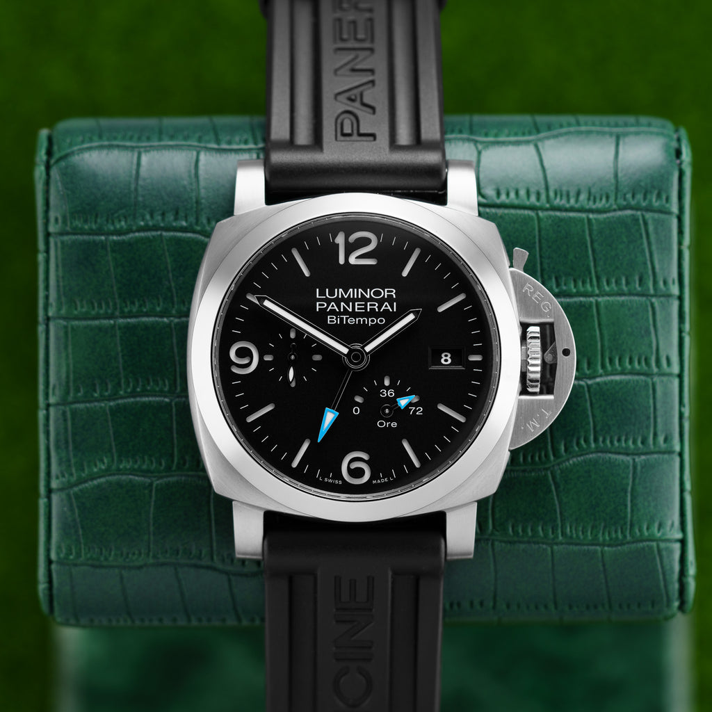 Description: Introducing the Panerai BiTempo Power Reserve PAM01360, a stunning timepiece that combines bold design with exceptional craftsmanship. Featuring a robust 44mm stainless steel case, this watch showcases a striking dial with dual time zones and a power reserve indicator, making it perfect for the modern adventurer. The sophisticated blend of style and functionality ensures you make a statement wherever you go. With its iconic Panerai heritage, the PAM01360 is not just a watch; it's a reflection of your distinct taste and passion for excellence. Own a piece of luxury that truly stands out in any collection.
