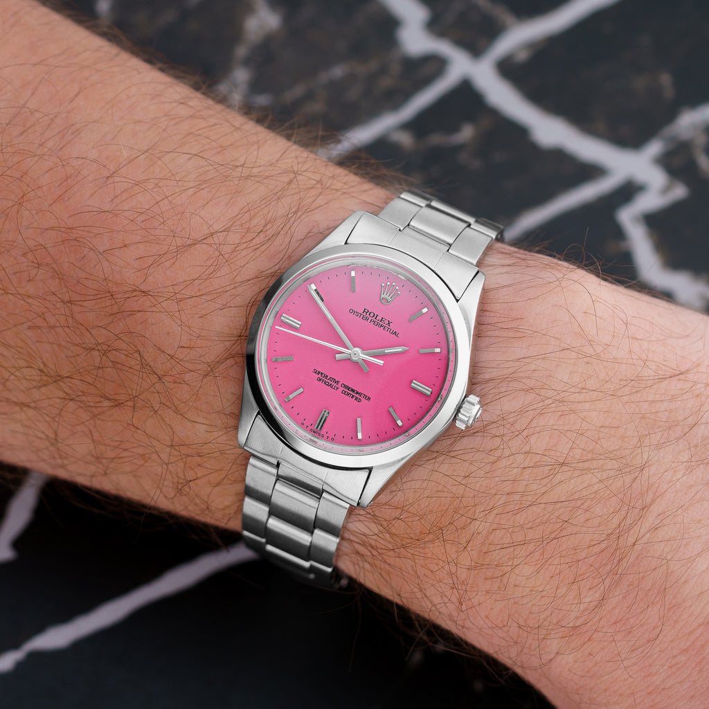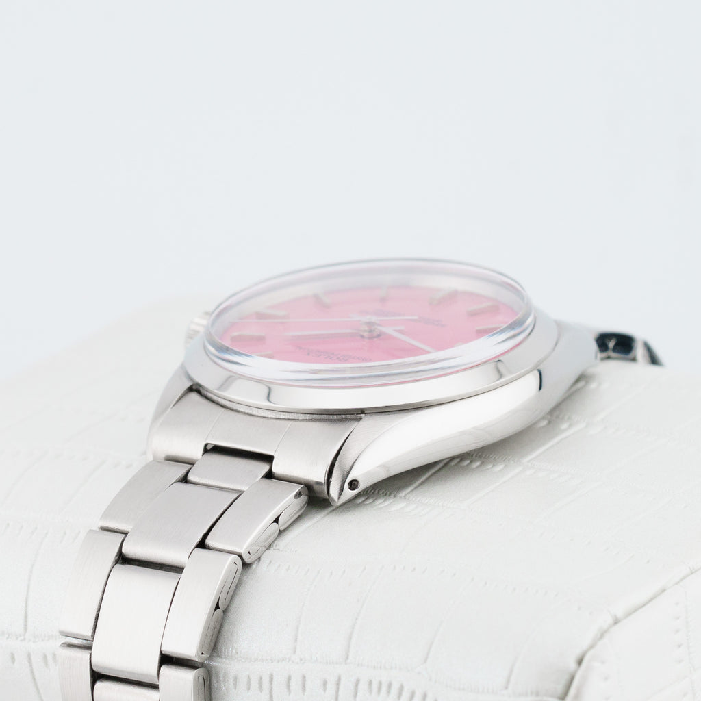 Description: The Rolex Air King 5500 is a classic watch that combines elegance and practicality, featuring a stunning stainless steel case and a sleek 34mm design. Renowned for its precision and style, this model showcases a clean dial with bold hour markers, making it a versatile choice for both casual and formal occasions. The Air King 5500’s robust construction ensures durability while maintaining a lightweight feel on the wrist. Perfect for collectors or first-time buyers, this iconic timepiece embodies the spirit of aviation and adventure, making it a must-have addition to any luxury watch collection. Unleash your style with this exceptional watch.