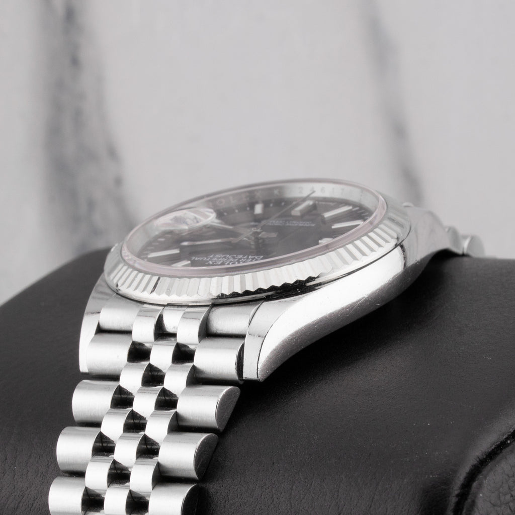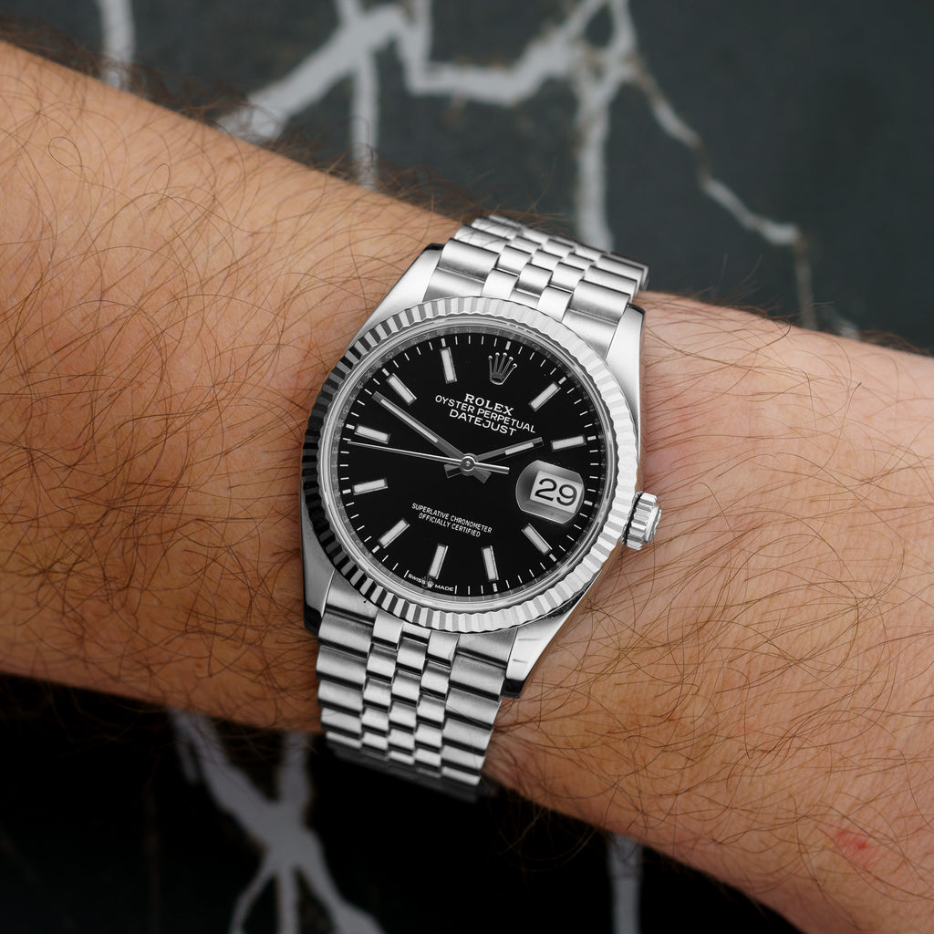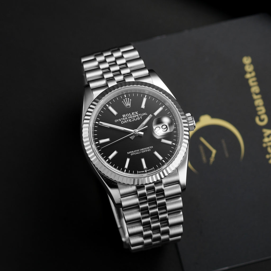 Description: Step into sophistication with this Rolex Datejust, featuring a sleek stainless steel case and a refined 36mm size that fits effortlessly on your wrist. Its classic design combines elegance with functionality, making it a perfect companion for any occasion. The balanced dial showcases luminous markers and a date function, ensuring practicality without compromising style. Whether you’re at a business meeting or a weekend brunch, this watch stands out with its understated charm. Ideal for collectors and newcomers alike, this piece embodies the spirit of luxury, making it a must-have addition to your watch collection. Embrace a new level of wristwear.