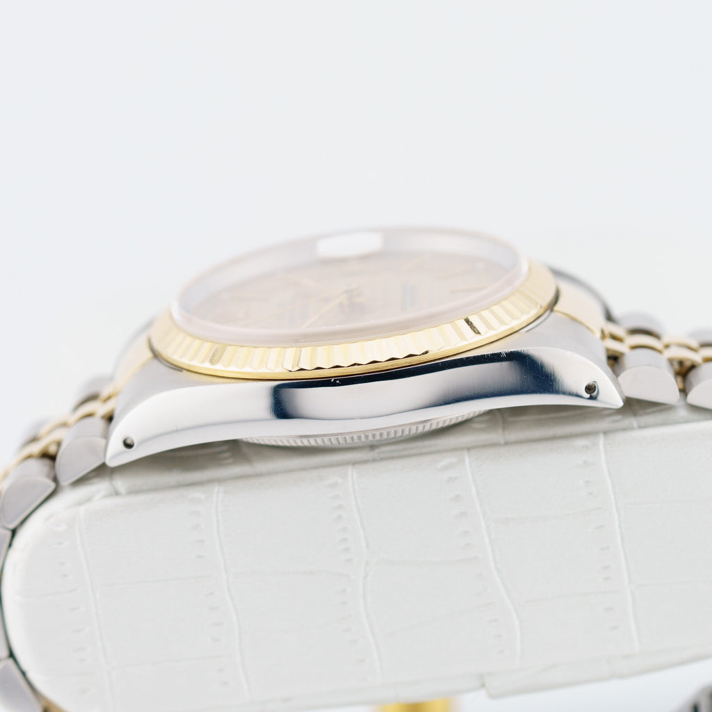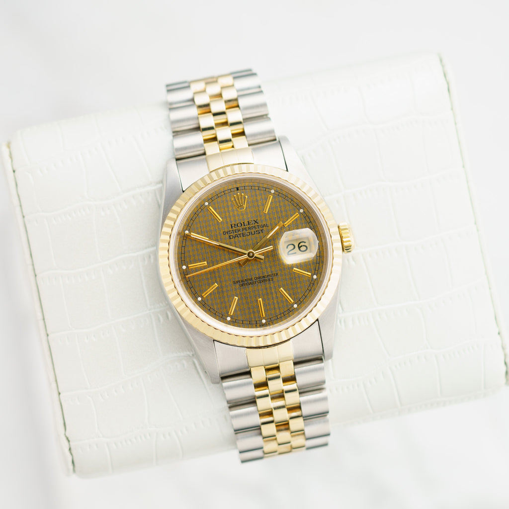 Description: Step into luxury with this stunning Rolex Datejust, featuring a captivating blend of stainless steel and yellow gold. With a comfortable 36mm case, this watch strikes the perfect balance between sophistication and everyday wearability. Its classic design is enhanced by a striking dial and a reliable automatic movement, ensuring you stay on time and in style. Whether dressing up for an event or enjoying a casual outing, this watch complements any outfit effortlessly. Make a statement with a timepiece that not only tells time but also reflects your personal style. Indulge in the ultimate accessory that never goes out of fashion.