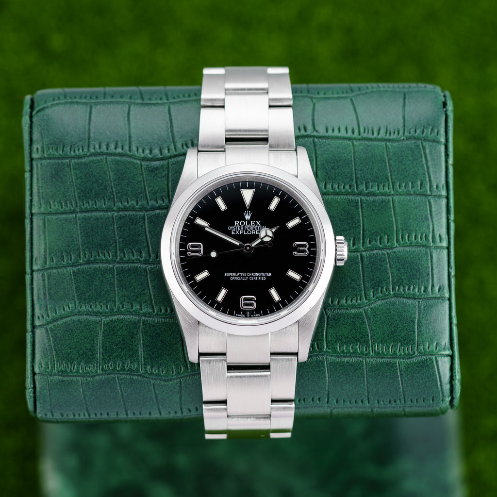 Description: The Rolex Explorer 114270 is the perfect blend of sophistication and rugged charm, featuring a robust 36mm stainless steel case. This iconic timepiece is designed for those who appreciate both adventure and elegance, boasting a striking black dial, luminous markers, and a reliable automatic movement. Whether you’re scaling mountains or enjoying a night out, the Explorer’s versatile style transitions effortlessly. With its rich history and impeccable craftsmanship, this watch embodies the spirit of exploration. Make a statement and add the Rolex Explorer 114270 to your collection, where luxury meets functionality in every tick of the second hand.