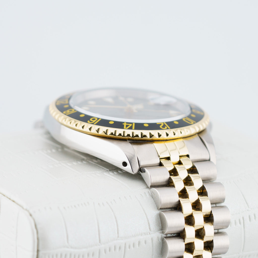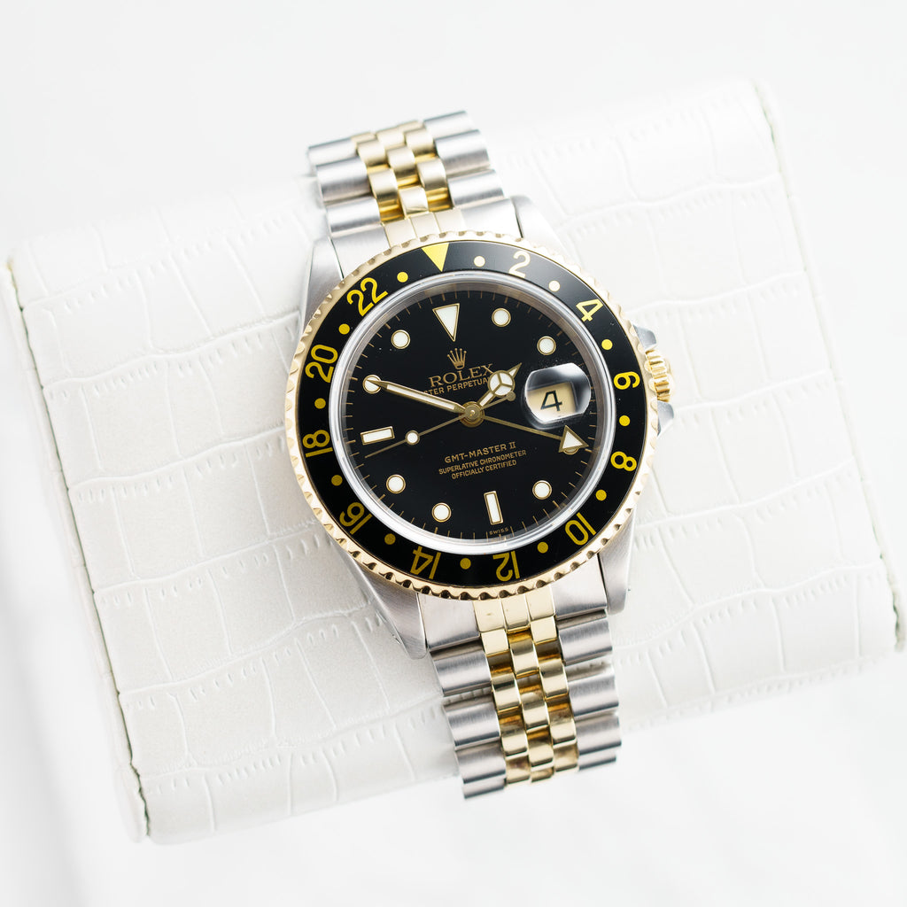 Description: Unveil the allure of luxury with this stunning Rolex GMT Master II, featuring a striking blend of stainless steel and yellow gold for a truly captivating look. The 40mm case offers a perfect balance of elegance and boldness, making it an ideal companion for both business and leisure. With its iconic dual time zone functionality and a sleek, durable design, this watch is crafted for the modern adventurer. Whether you're jet-setting across continents or enjoying a night out, this Rolex ensures you stay stylish and punctual. Indulge in a piece of horological art that embodies sophistication and precision.