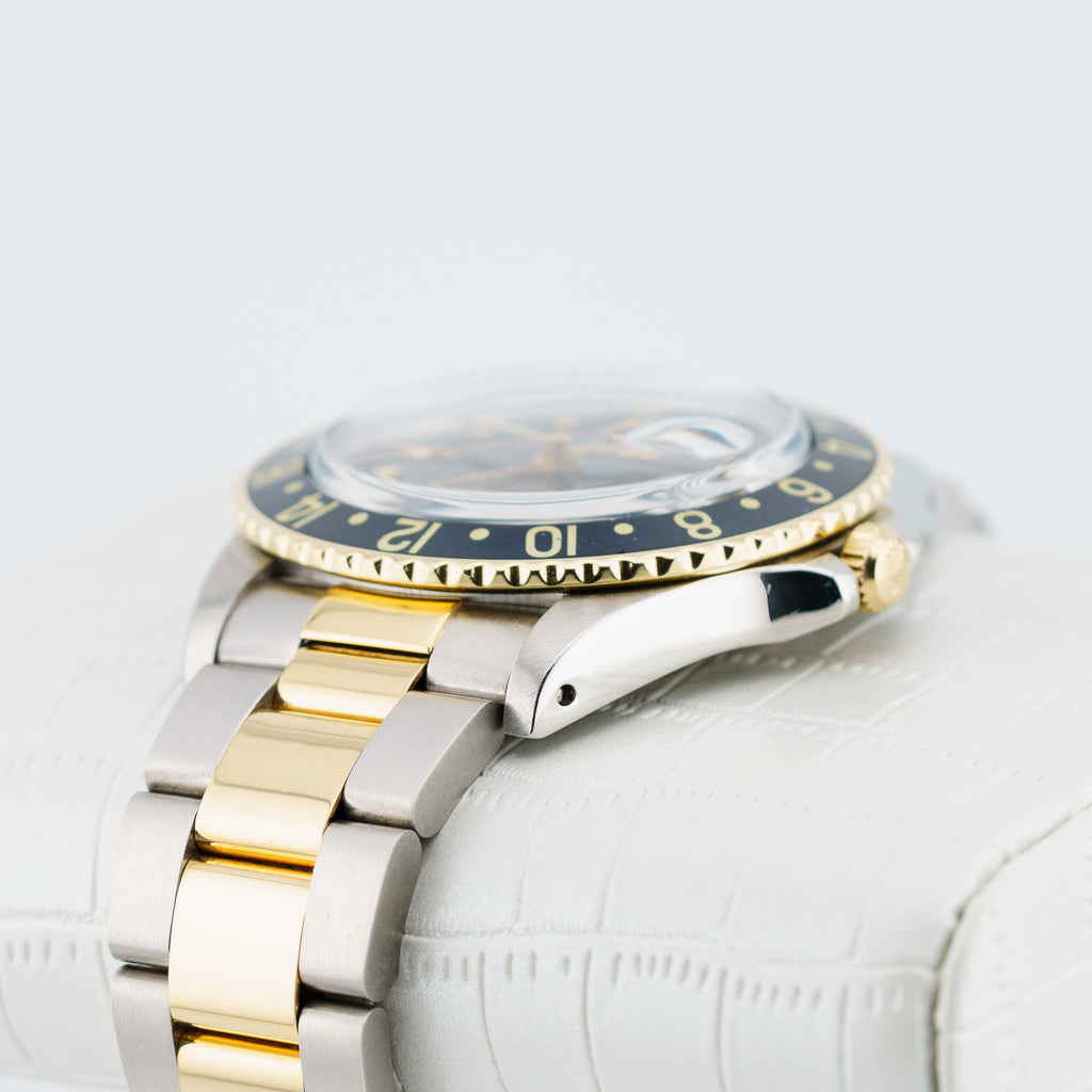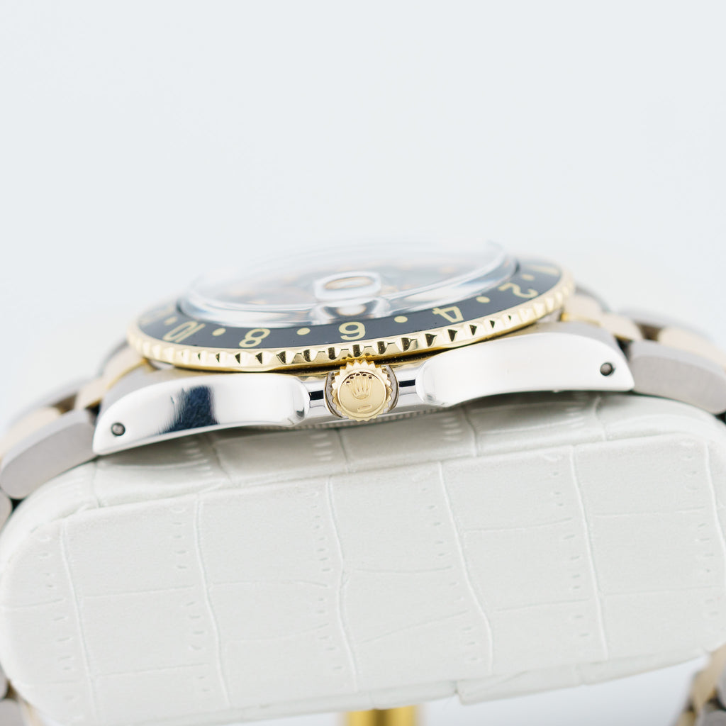 Description: Unveil a classic blend of luxury and functionality with this stunning Rolex GMT Master, featuring a striking stainless steel and yellow gold case. With its 40mm size, this watch exudes an aura of sophistication while offering versatility for any occasion. The vibrant bezel not only adds a pop of color but also serves as a practical tool for global travelers. The iconic design and meticulous craftsmanship ensure that this timepiece stands out on the wrist. Whether you're navigating time zones or simply making a statement, this Rolex embodies both style and precision, making it a must-have for any watch enthusiast.
