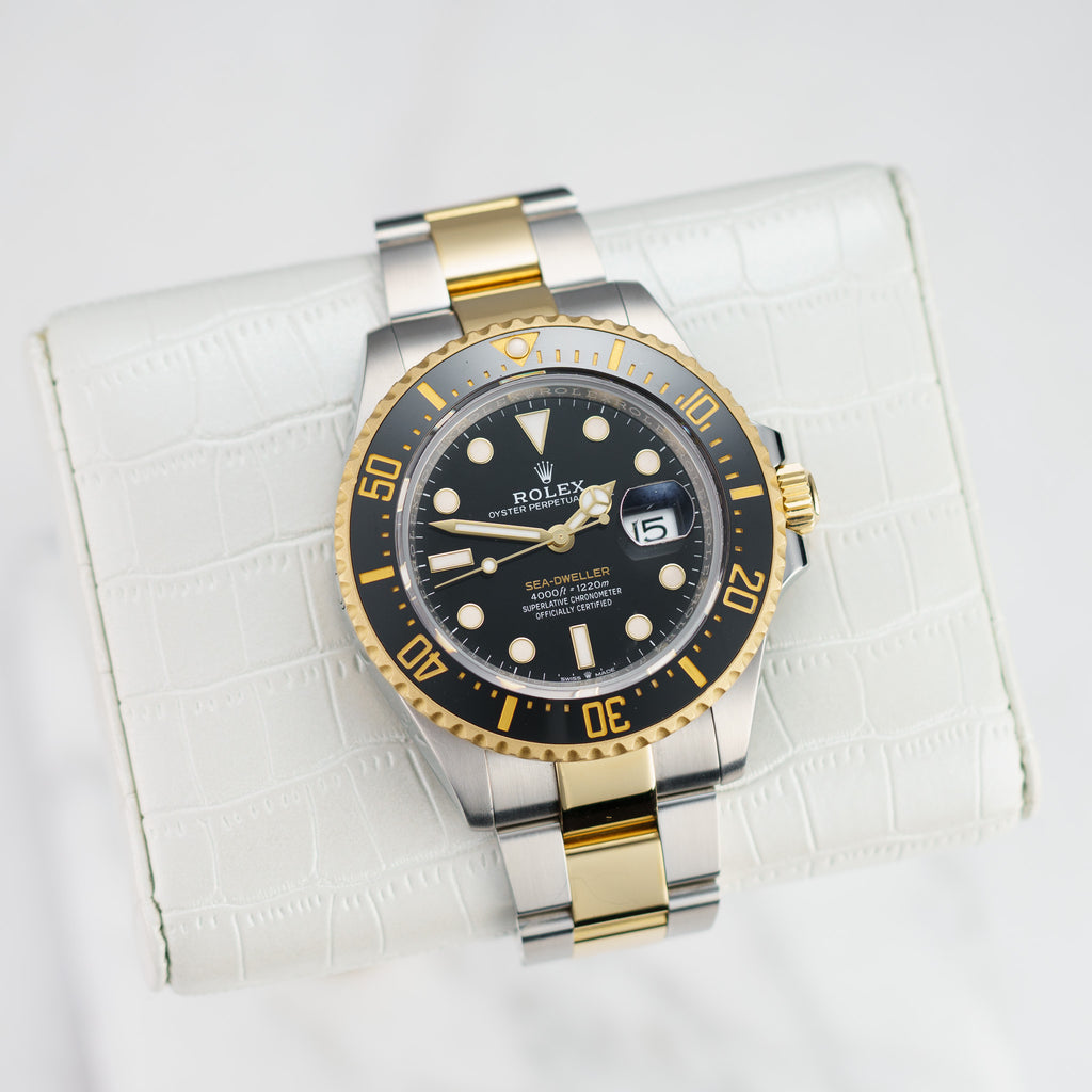 Description: Explore the allure of the Rolex Seadweller, a stunning blend of stainless steel and yellow gold that captures attention effortlessly. Its robust 43mm case is designed for those who appreciate both style and functionality, offering water resistance for underwater adventures. The striking black dial complements the luxurious gold accents, creating a watch that is as functional as it is fashionable. Perfect for any occasion, this timepiece speaks to the adventurer in you while maintaining a sense of refined elegance. Make a statement with a watch that embodies craftsmanship and sophistication, ensuring you stand out wherever you go.